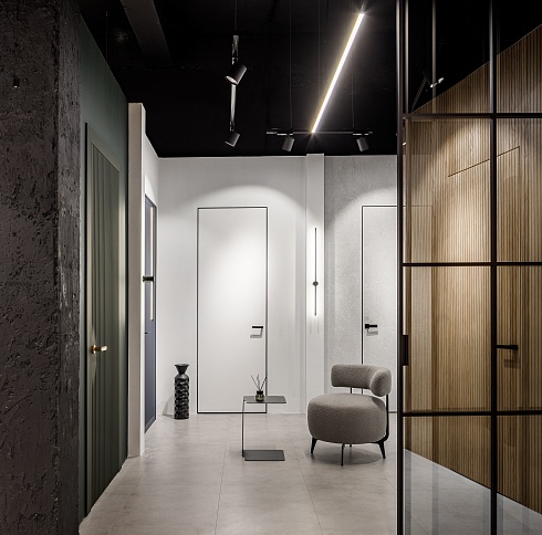 «Наши концепции в дизайне всегда опираются на минимализм и рациональность. Чистые линии и лаконичные формы всегда выстраивают строгую логику в оформлении интерьеров. В своих проектах мы почти всегда используем двери со скрытым монтажом, в сочетании с шпонированными панелями, с зеркалами или просто под покраску они помогают нам организовать ту самую притягательность минимализма.»Видео о скрытых дверях