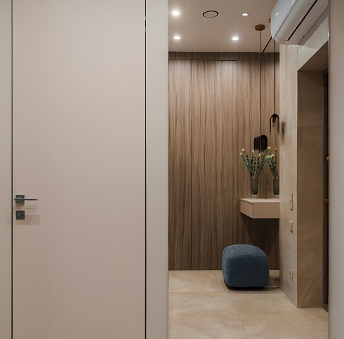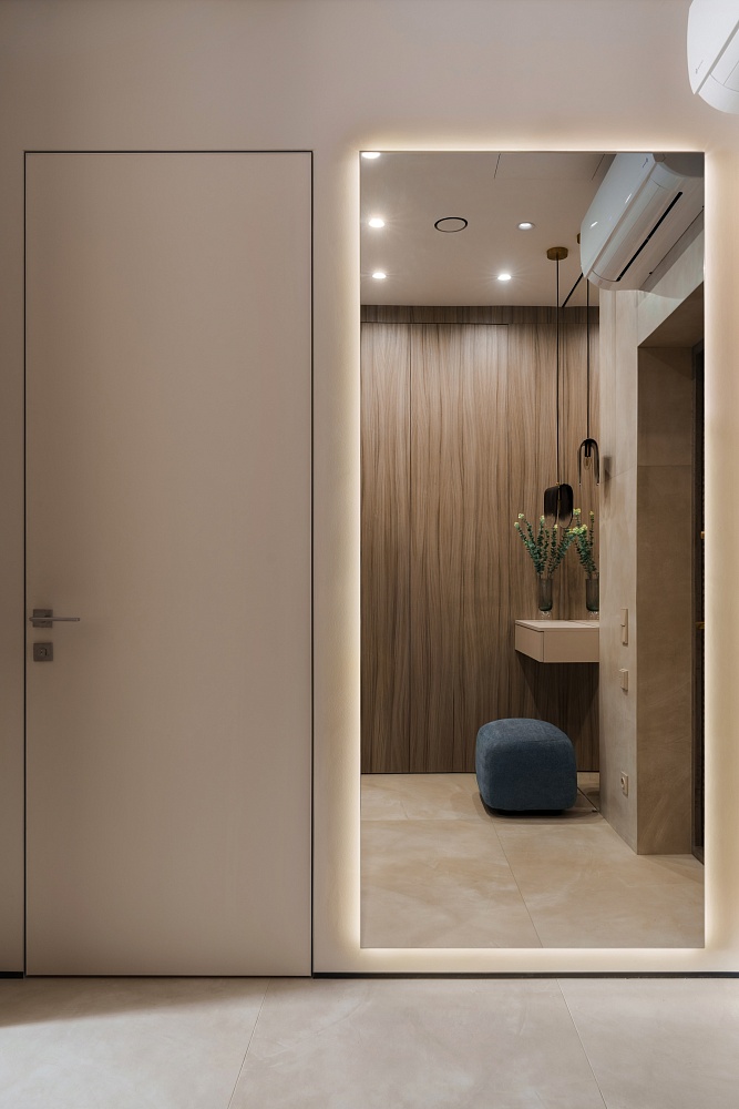- когда в проекте много дверей, полезно часть из них сделать "невидимыми" - это делает интерьер визуально более "легким", чистым, лаконичным