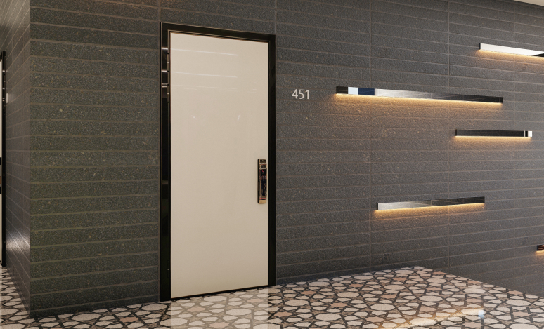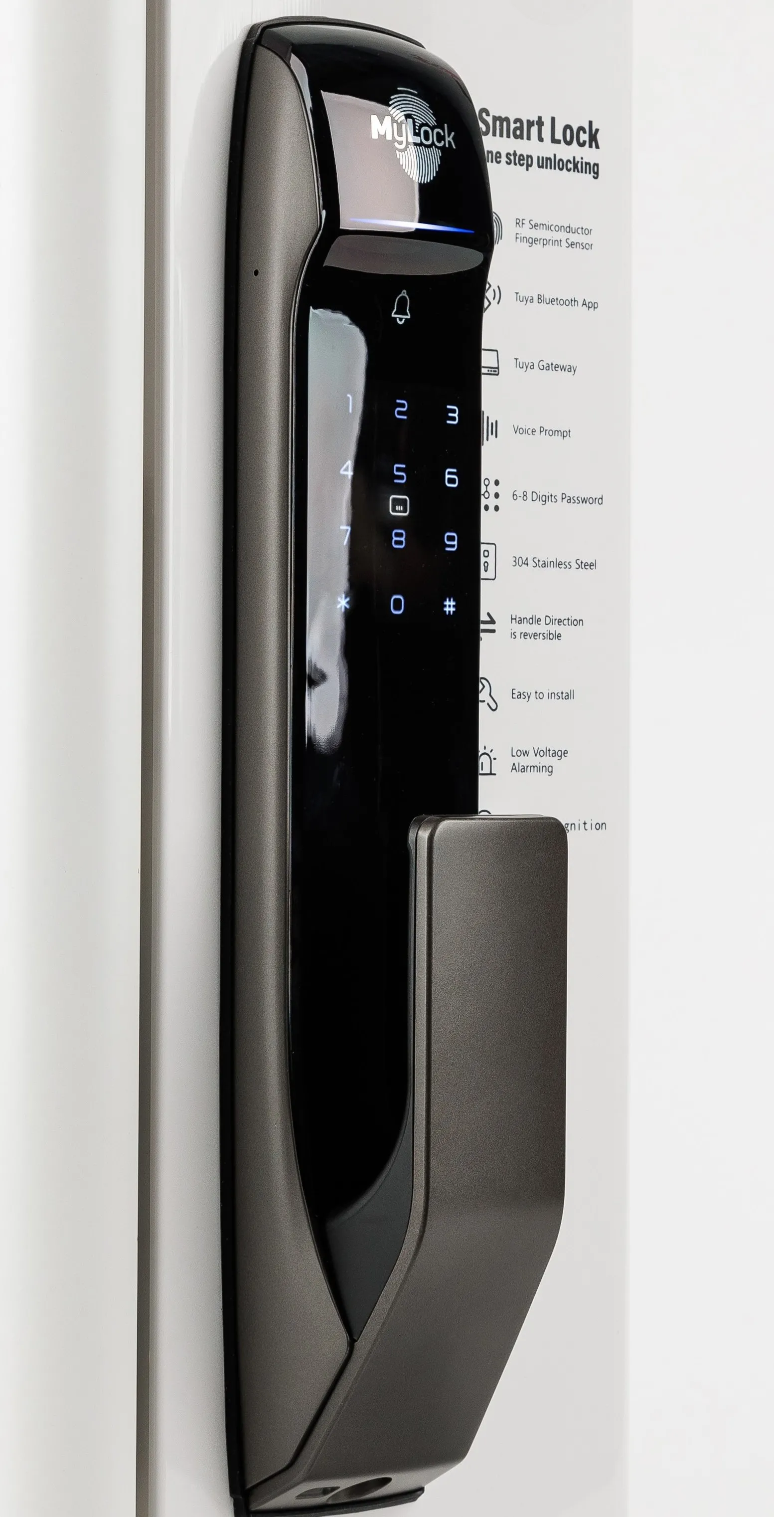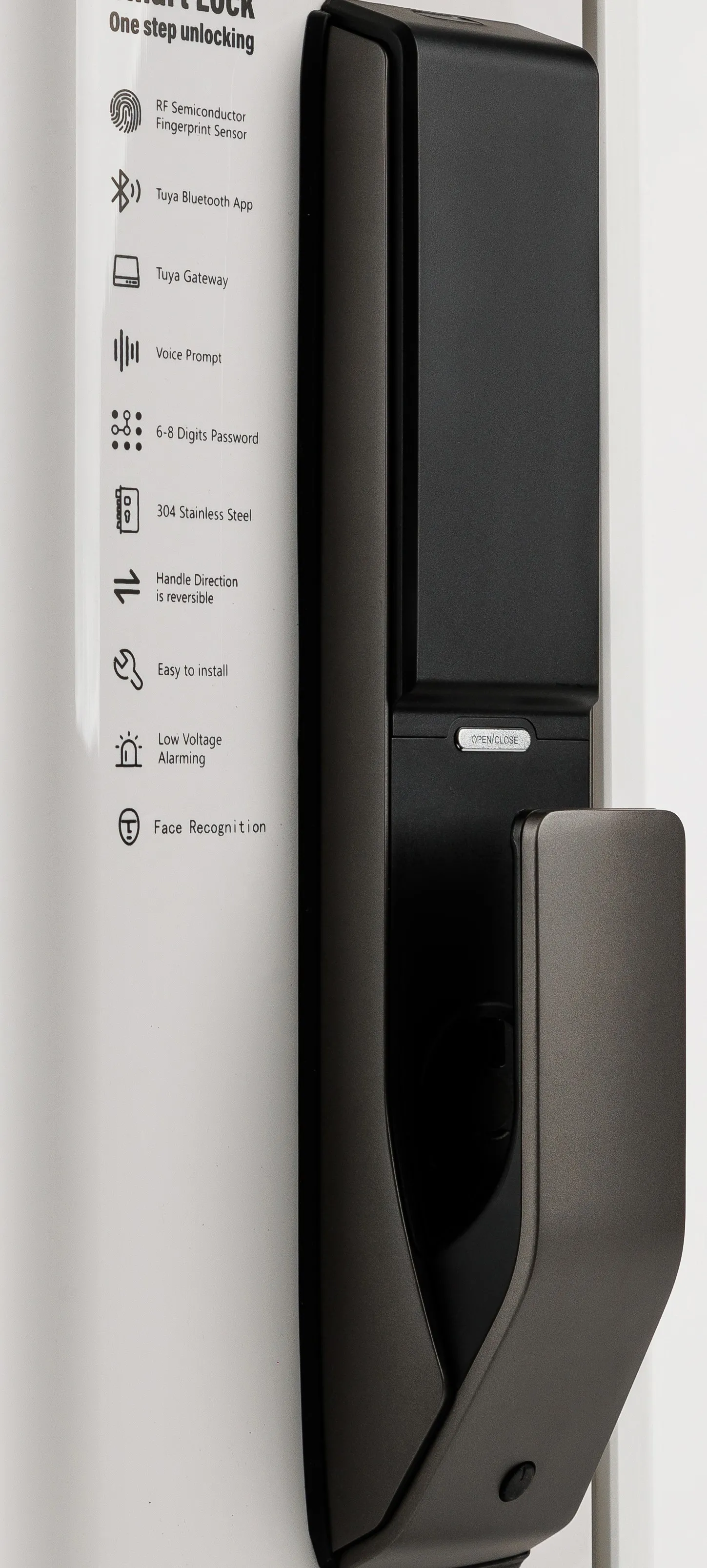 Подходит для входных дверей толщиной 70-110 мм. Обладает современным лаконичным дизайном, четкими линиями и гармонично вписывается в дизайн двери. Внешняя алюминиевая ручка-штанга с PVD покрытием (не выцветает 20 лет) и имеет дополнительную защиту от влаги, внутренняя ручка на планке выполнена из фрезерованного алюминия. Большой замок из нержавейки с функцией дожима двери. Есть приложение для IOS и Android - USmart Go.