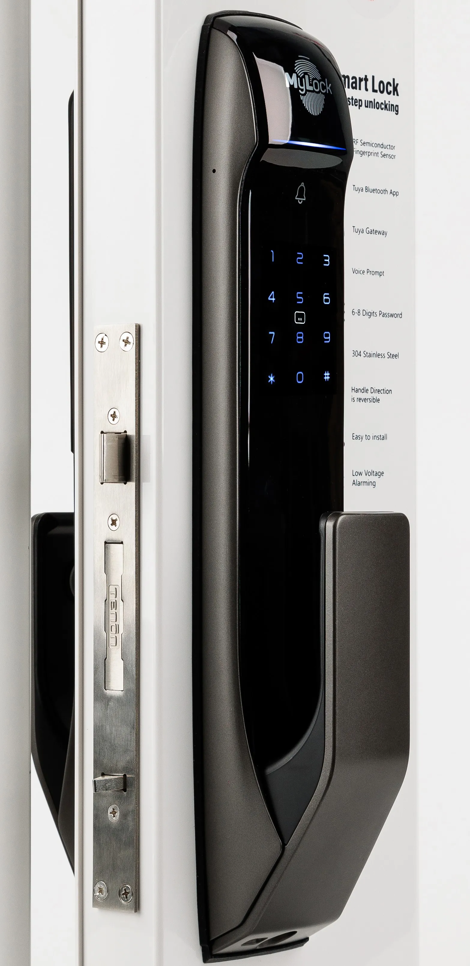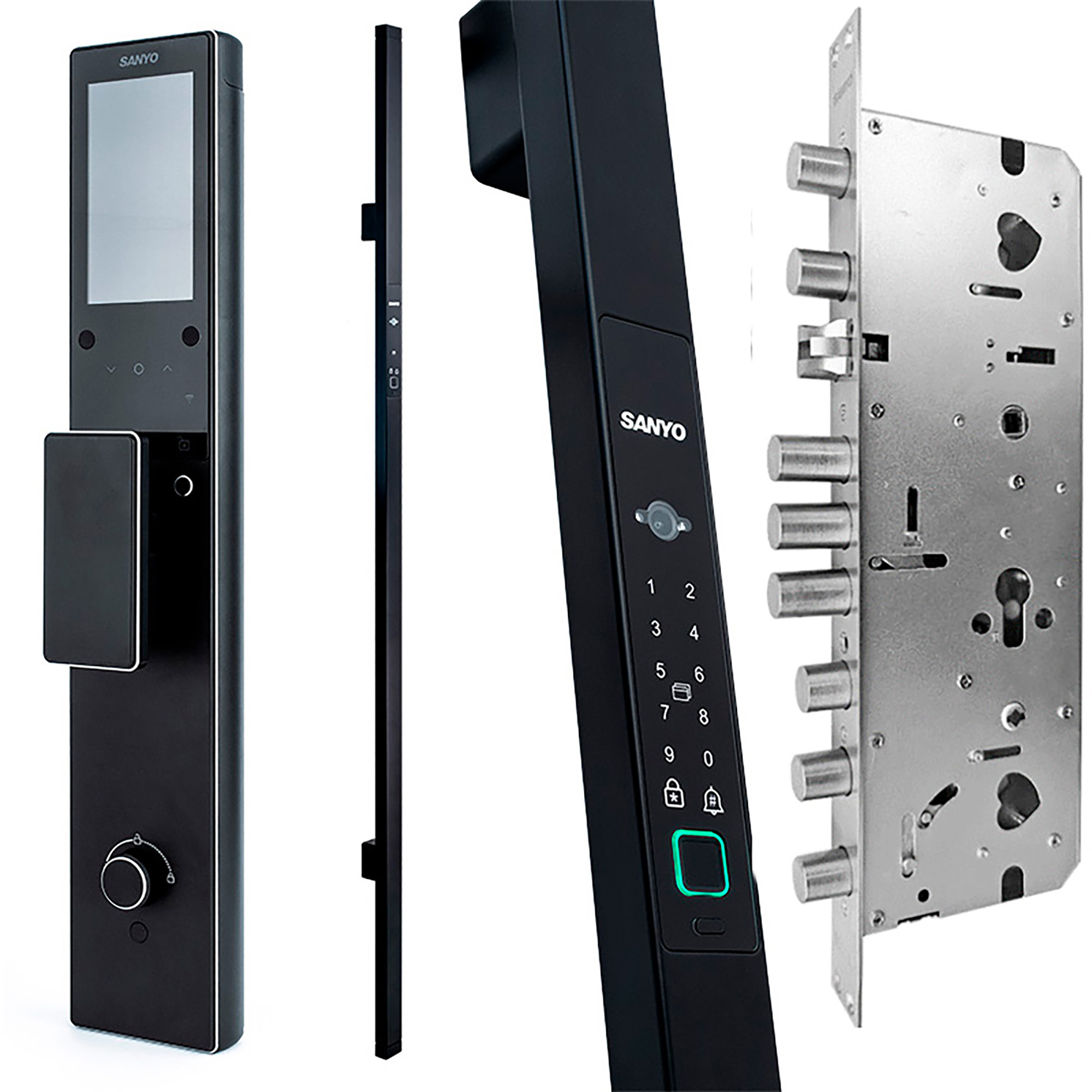 Sanyo D700 Tuya автоматический умный замок с домофоном и камерой высокого разрешения с ночным видением. Для удобства имеет кодовую сенсорную панель с подсветкой. Запирание двери автоматическое, при закрытии створки и дожима дверного полотна. Имеет 5 способов разблокировки: отпечаток пальца, цифровой пароль, RFID карта, механический ключ, приложение через смартфон.