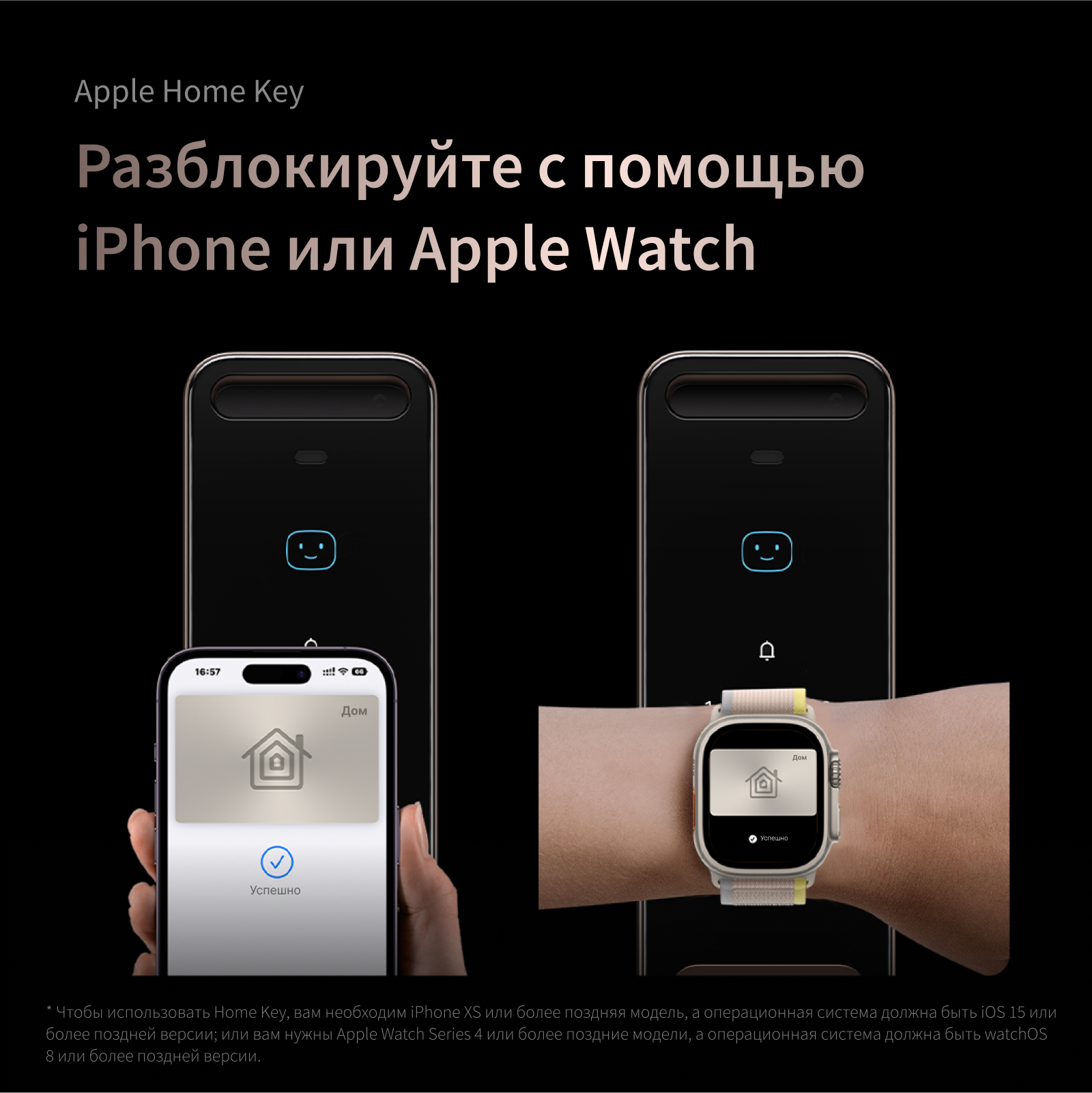 • Через HomeKit, включая новейшую функцию Apple Home Key