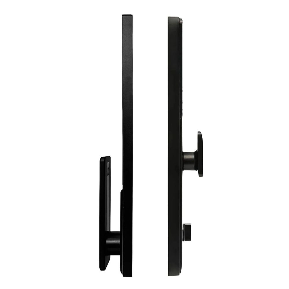 Имеет немаркий алюминиевый корпус. Предупредит о попытке взлома и множестве неправильных попыток ввода пароля. У устройства скрытая клавиатура — чтобы её активировать, нужно дотронуться до сенсорной панели. А быстрый и эргономичный считыватель отпечатков пальцев встроен в ручку таким образом, чтобы ваш большой палец естественно касался его при открытии двери.
